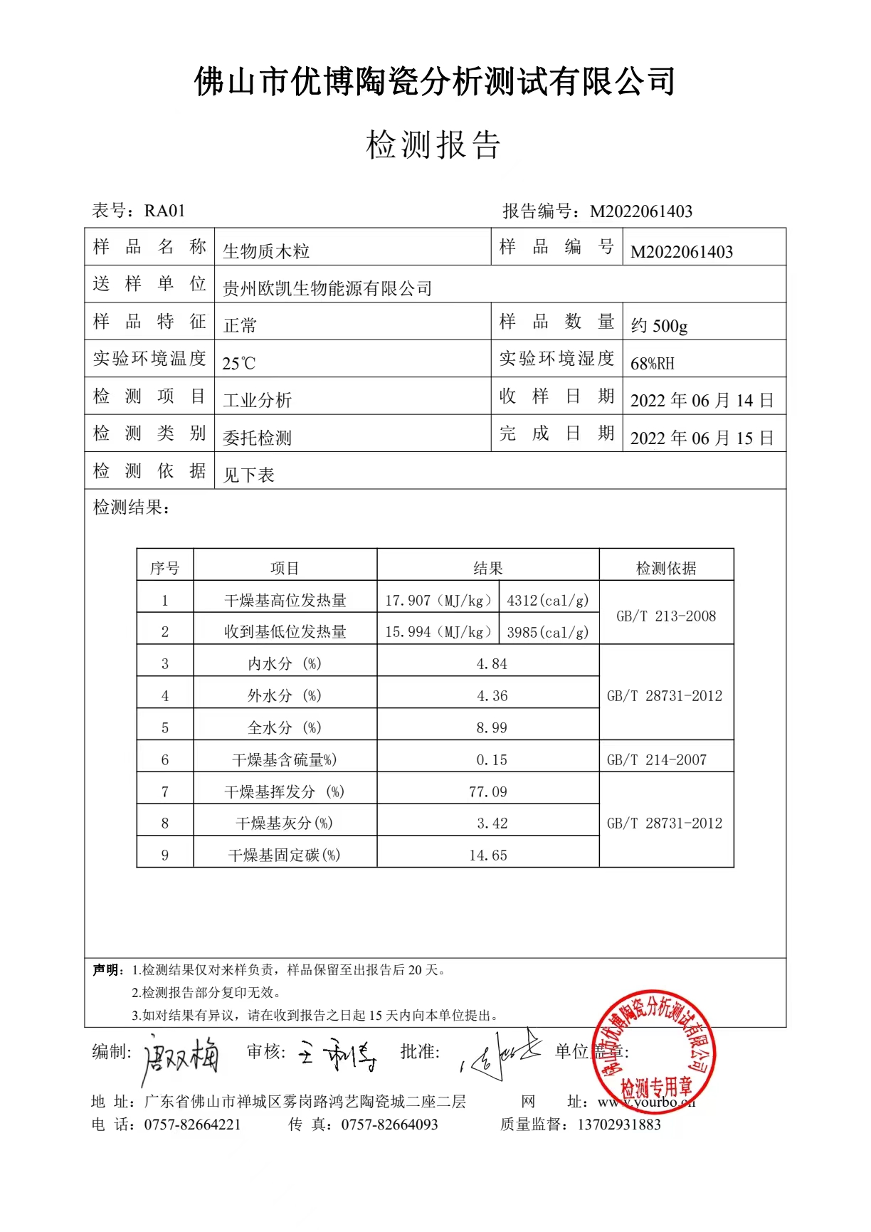 1,生物質(zhì)顆粒燃料發(fā)熱量大,發(fā)熱量在3900~4800千卡/kg左右,經(jīng)炭化后的發(fā)熱量高達(dá)7000—8000千卡/kg。